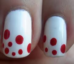 Lak je nagels eerst wit en pak er vervolgens een paar potjes gekleurde nagellak en een tandenstoker bij. De tandenstoker doop je in een kleurtje en vervolgens maak je er stippen mee op je nagels